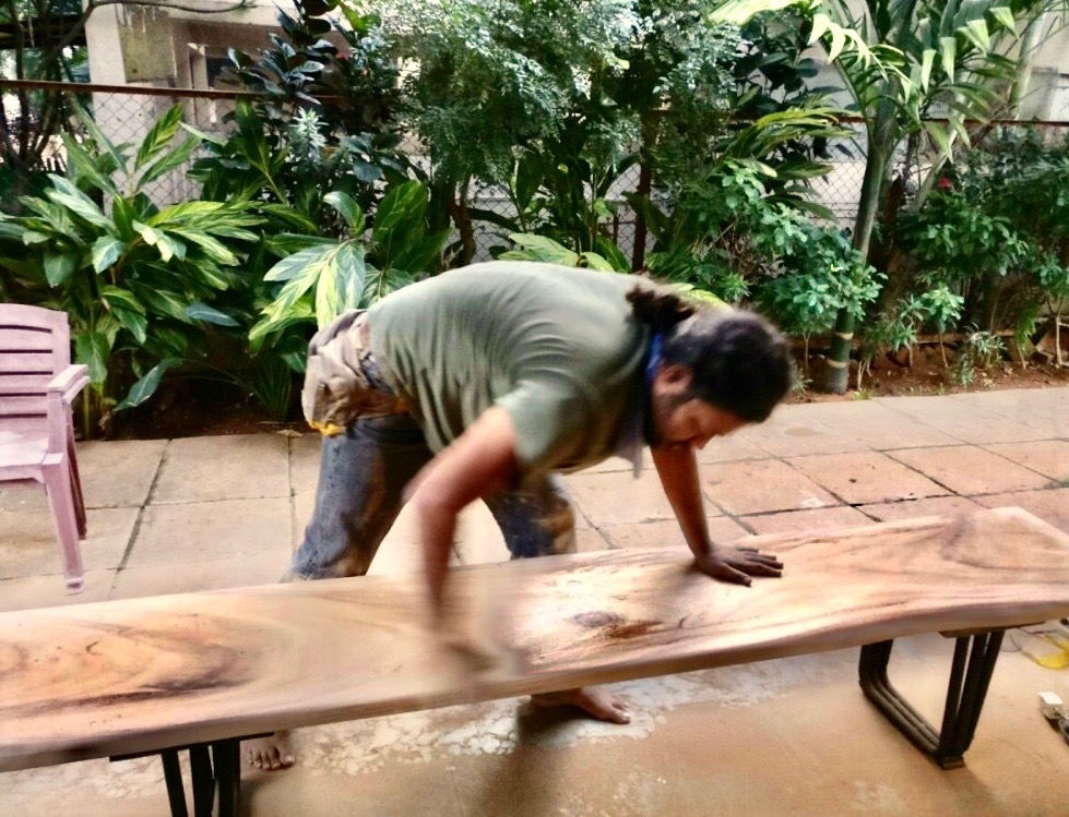 Kuldeep, making of the ‘Pigeon’ bench at ‘Celebrating Nakashima at NID’, 2016