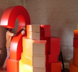 the large question marks we made for some sort of a curiosity workshop. went and planted them all over the TESCO campus while nobody was around. those days harish used to work with us.