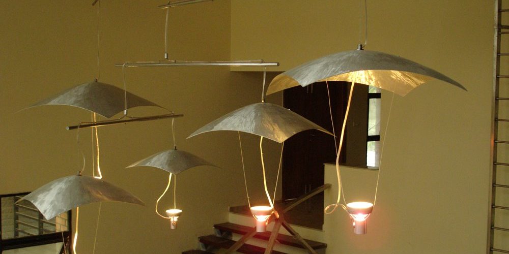 one of our first projects even before we set up our workshop. we installed this lamp in the foyer of some software office and had quite a time climbing 30 ft in the air tyring to tug the lamp into place.